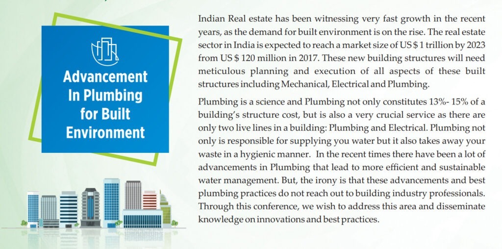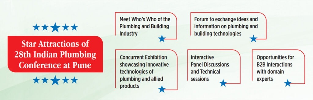 EVENTS & ACTIVITIES 28TH INDIAN PLUMBING CONFERENCE, Thursday, Friday & Saturday, 1st - 3rd December 2022 Download Brochure SESSIONS Moving towards implementation of Bharat tap through Low Flow Fixtures & Sanitaryware Water Audit, BMS and IoT in Plumbing Applications 24×7 Water Supply Case Studies on Achieving Net Zero Water & Waste Conveniences in Public Spaces KEY HIGHLIGHTS Delegates 0 + Visitors 0 Exhibitors 0 Speakers, Panellists & Industry Personalities 0 Days of Captivating Sessions 0 GLIMPSES OF 28TH INDIAN PLUMBING CONFERENCE