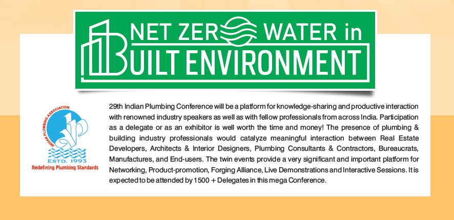 IPA is thrilled to announce the 29th Indian Plumbing Conference (IPC), the annual event of IPA from Dec 21st to 23rd, 2023, at the YMCA International Centre in Ahmedabad. The theme for the 29th IPC is “Net Zero Water in the Built Environment,” focusing on critical issues related to water conservation and sustainability for achieving a circular water economy in the construction sector.